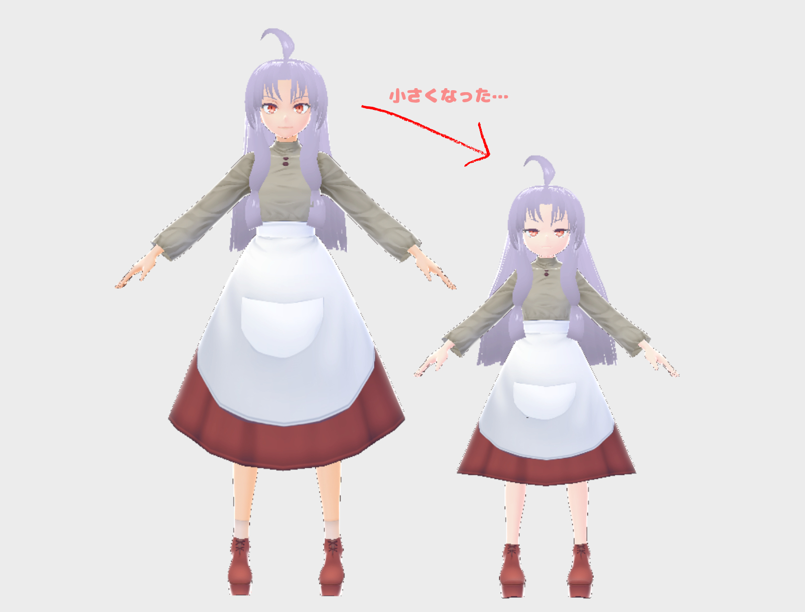 数年前作成したものからVRChatっぽい頭身に調整。(140cmくらい)