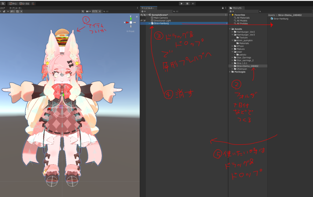 ヒエラルキーからフォルダにドラッグ&ドロップで原型プレハブを作る