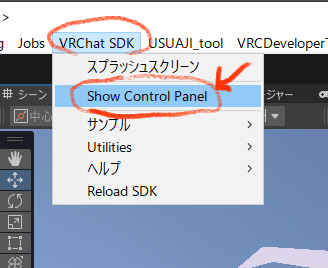 ■上部メニューVRChat SDKからShow Control Panel