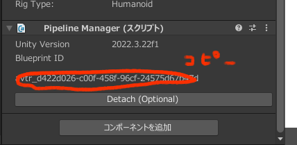 もし既にIDが書いてあったら、Detach(Optional)を押して削除しペーストします。