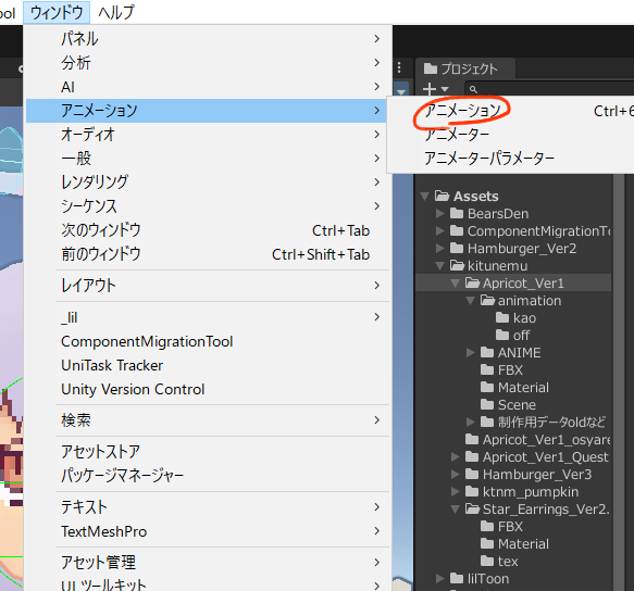 アニメーションウインドウを開いてください。