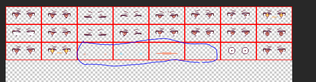 ガイドの1マスごとに1表情分描いてありますので変更する場合はガイド内に収めてください。