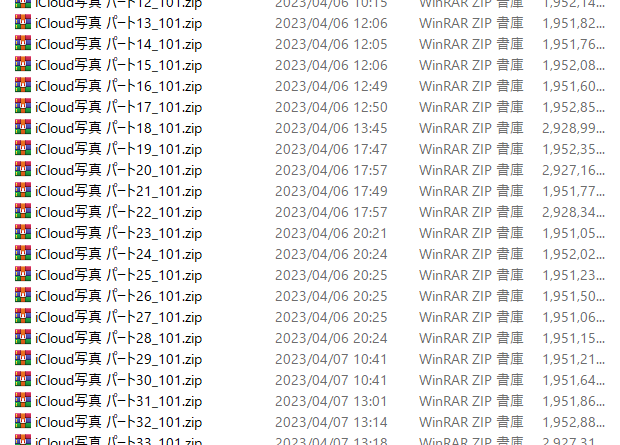 デメリット2:日付順にzipになるのではなく、謎の順番でバラバラに入っている。