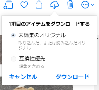 ので右端の(…)マークから、その他のダウンロードオプション→未編集のオリジナル→ダウンロードを