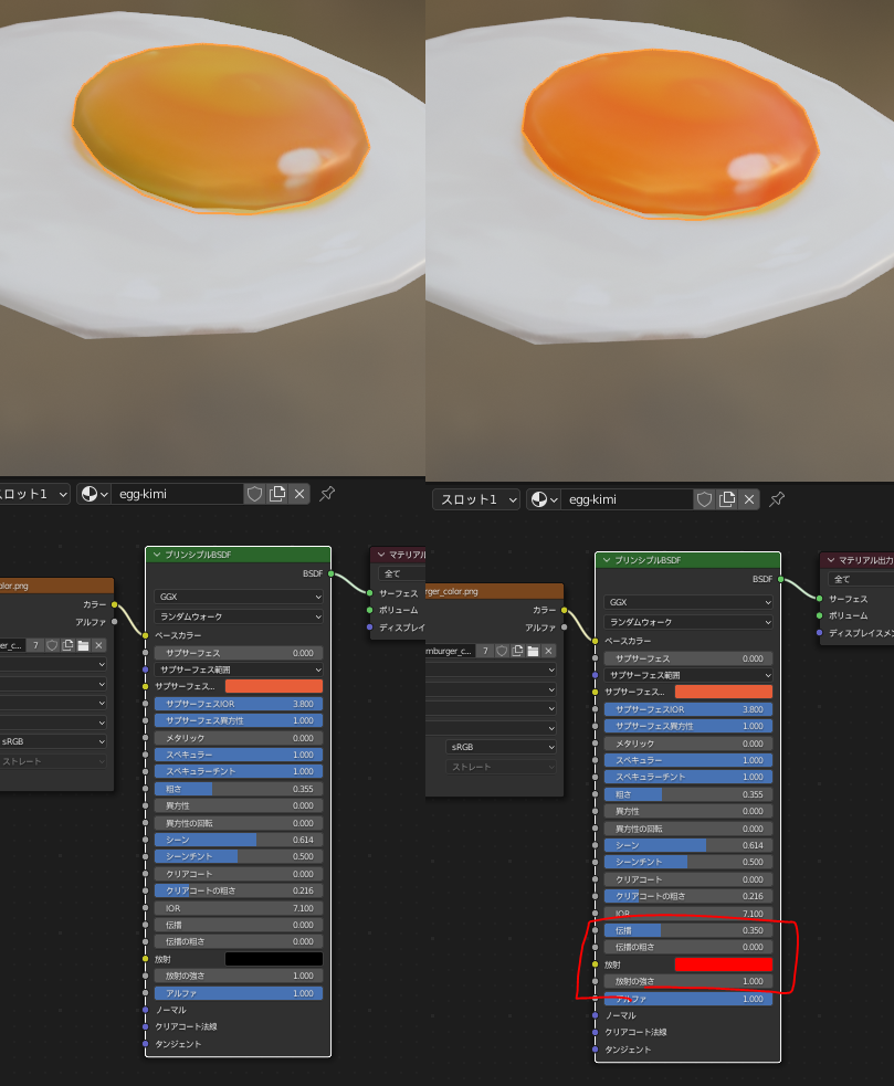 めだまやきの裏表の途切れが出るので、テクスチャペイントで修正してみる。