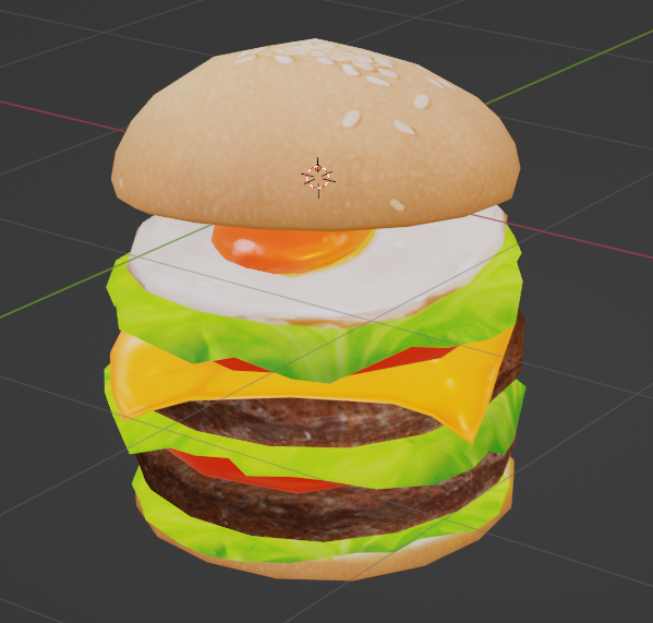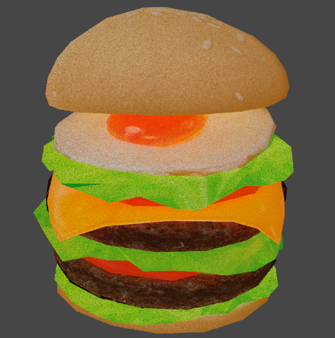 レンダリングしたら怪しげなバーガーになってしまった……伝播と放射がいけなかったのか。