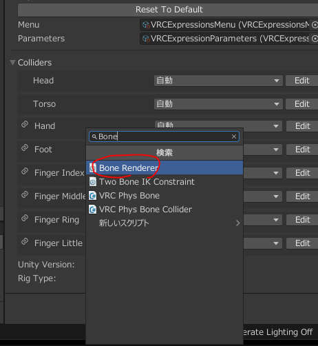 使いたいモデルにコンポーネント追加→「Bone Renderer」