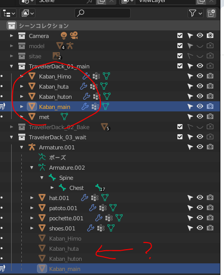 かばんひもがボーンに反応しなくてペアレントし直し、