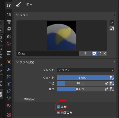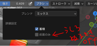 ブラシの設定の前面のみをオフにする