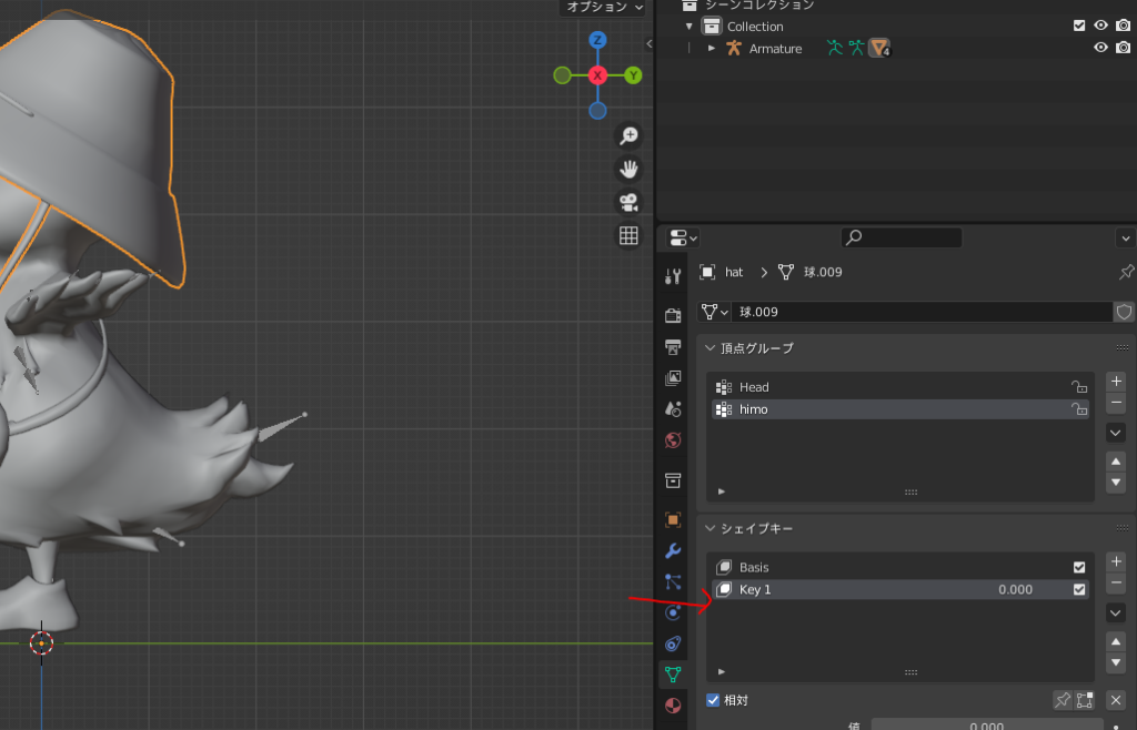 ついでに帽子ON・OFFのシェイプキーもつけた、再度Unityへ…!