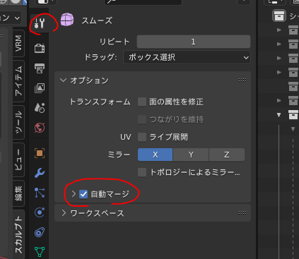 頂点の自動マージにチェックをする
