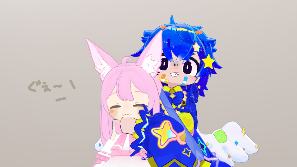 星と青だったら頭に星つけて髪の毛を青にするとか…