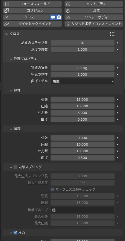 物理演算の場合:体にコリジョン、服にクロスを適用し物理演算で作る