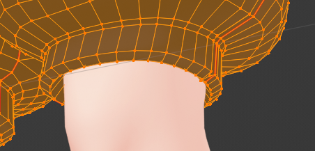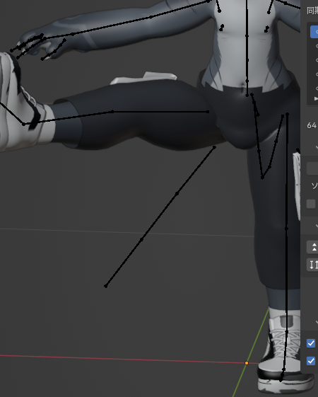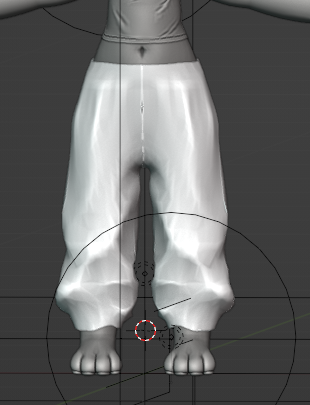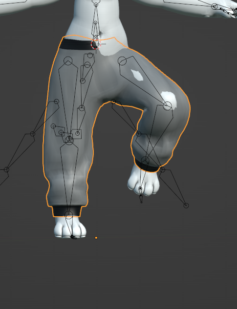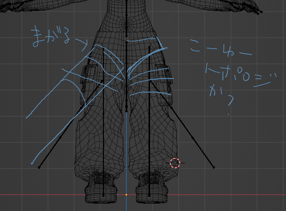もしかして胴体に近いほうのメッシュと足のメッシュを分けてミラーにしたほうがいいかも。