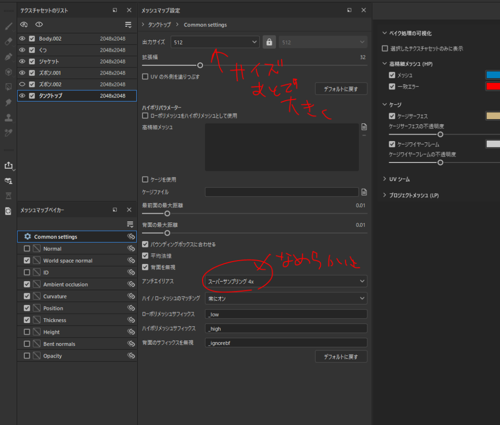 メッシュは普通の細かさで良い