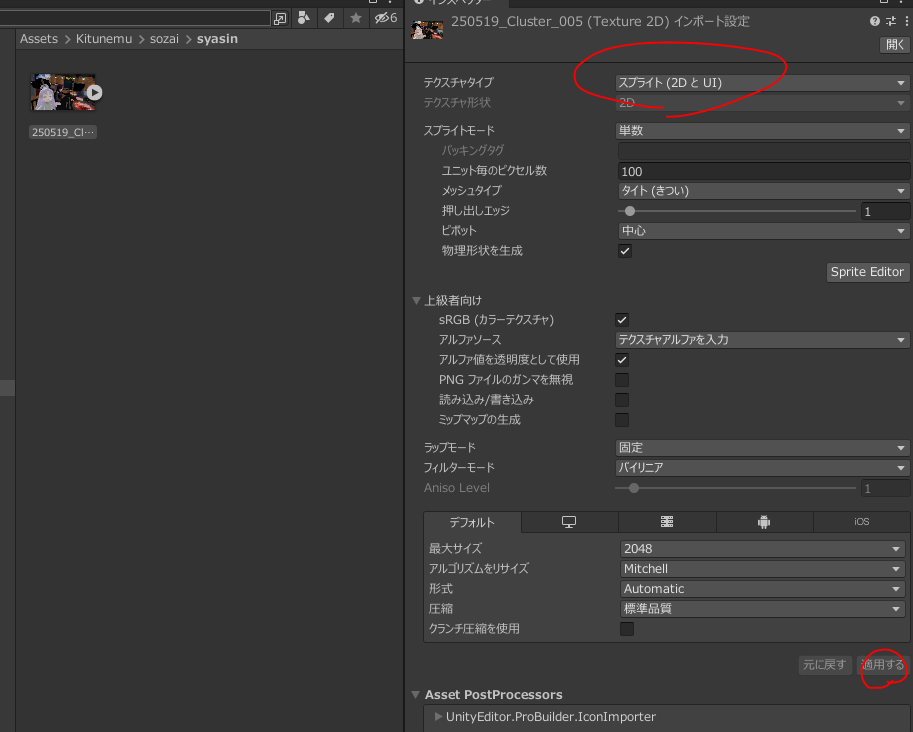 ドロップした写真をスプライトに設定し適用。