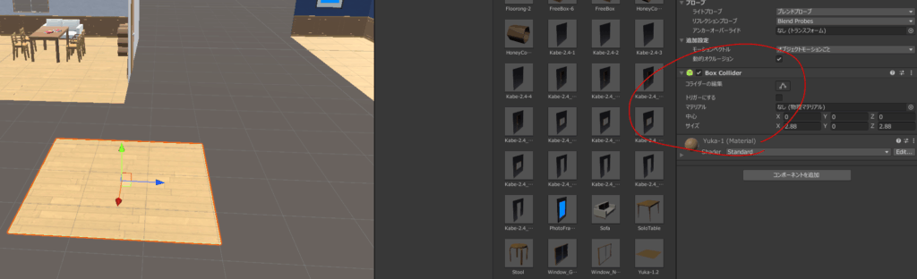 床を配置した所、Box Colliderが。なるほどー