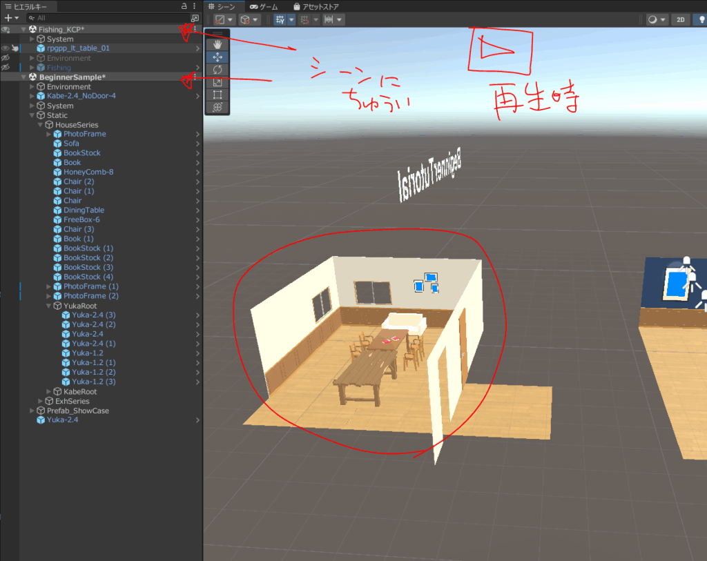 このシーンの中にシーンを置くシステムあまり活用できてない。